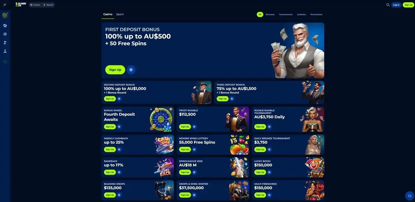 Billionaire Spin Casino bonuses include welcome packages, reload bonuses, free spins, and exclusive promotions for loyal players. You can find casino game bonuses tailored to slots, table games, and live dealer experiences. Regular special offers and seasonal casino promotions ensure there’s always something new to enjoy.